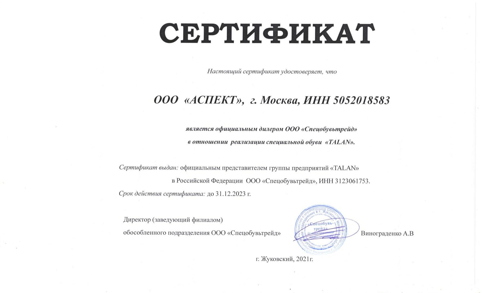 Выражаем глубокую признательность и искреннею благодарность вашей компании ООО «АСПЕКТ»‚ за качественные и своевременные